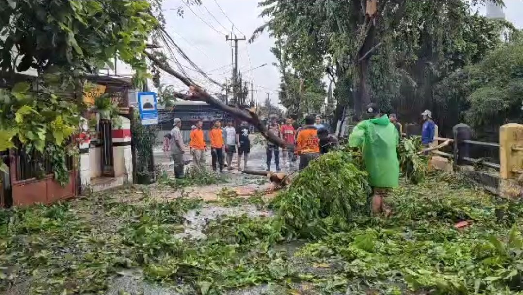 DepokSpotLight – Hujan deras yang disertai angin puting beliung pada Selasa (7/10/2025) mengakibatkan puluhan kios pelaku Usaha Mikro, Kecil, dan Menengah (UMKM) rusak serta sejumlah pohon tumbang di wilayah Sawangan dan Limo, Kota Depok.