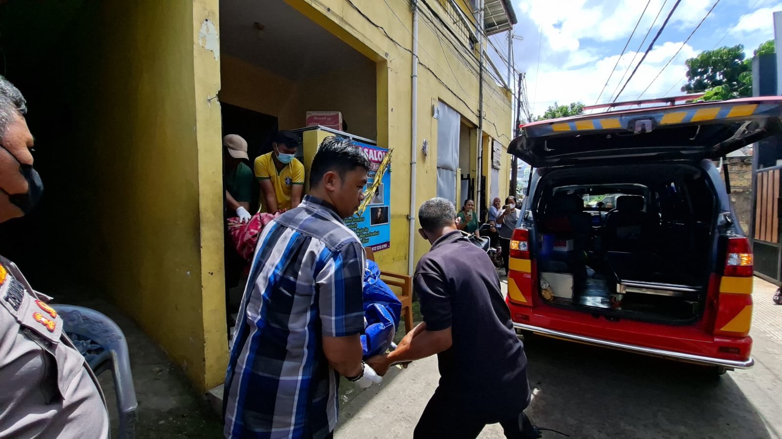 Selain itu, mobil ambulans juga sudah disiagakan di lokasi untuk mengangkut mayat tersebut.