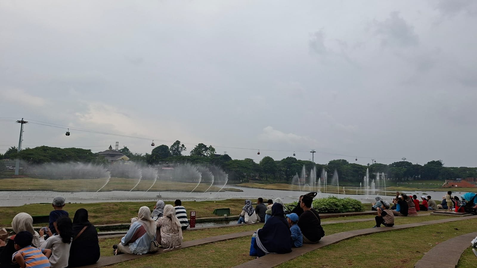 Air mancur menari mengikuti irama musik, pengunjung pun tak mau melewatkannya begitu saja, mereka ramai-ramai mengabadikan dengan ponsel pintar.
