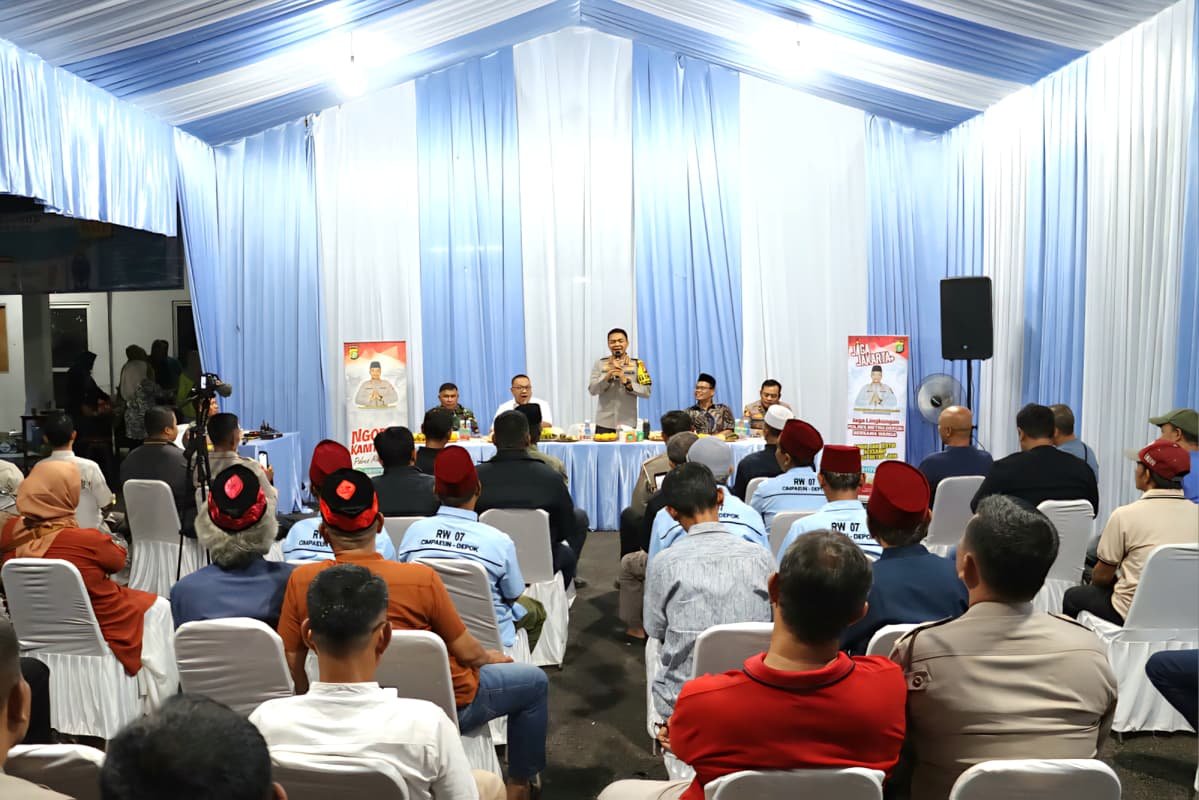 Kapolres Metro Depok Kombes Pol Abdul Waras menggelar kegiatan Sambang dan Ngopi Kamtibmas bersama warga di Yayasan Karya Putra Bangsa, RW 07, Kelurahan Cimpaeun, Kecamatan Tapos, Kota Depok, Jumat (7/11/2025) malam.