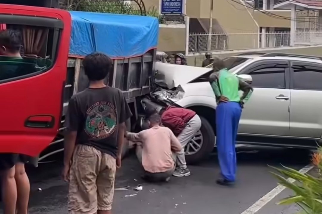 Dalam kecelakaan tersebut, mobil Toyota Fortuner diketahui ditumpangi dua orang. Keduanya tidak mengalami luka serius.